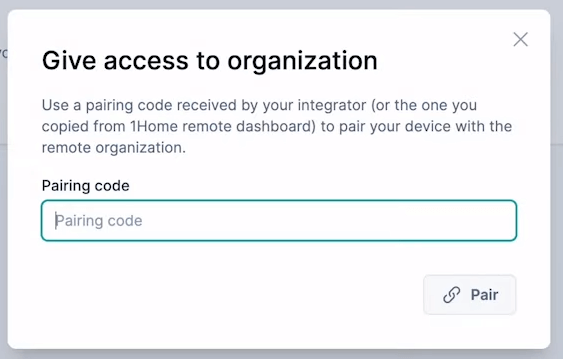 Projenizi oluşturduktan sonra, 1Home Server için eşleştirme kodunu hemen görebilirsiniz. Ancak, cihazınızı (hatta birden fazla cihazı) dilediğiniz zaman proje detayları sayfasından da eşleştirebilirsiniz.