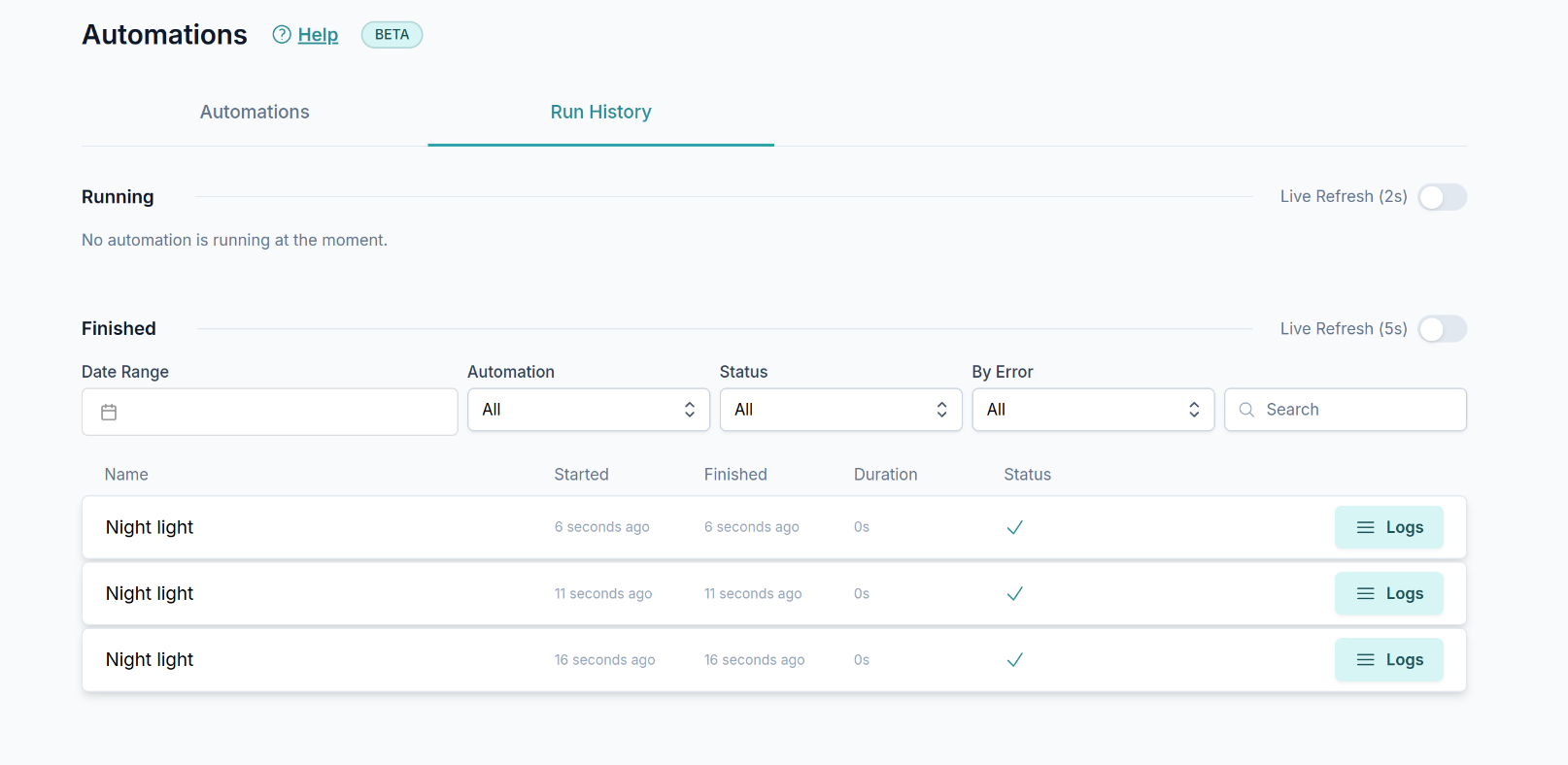 - Run history - Always know what is going on in your system, which automations are running and if they have ran successfully